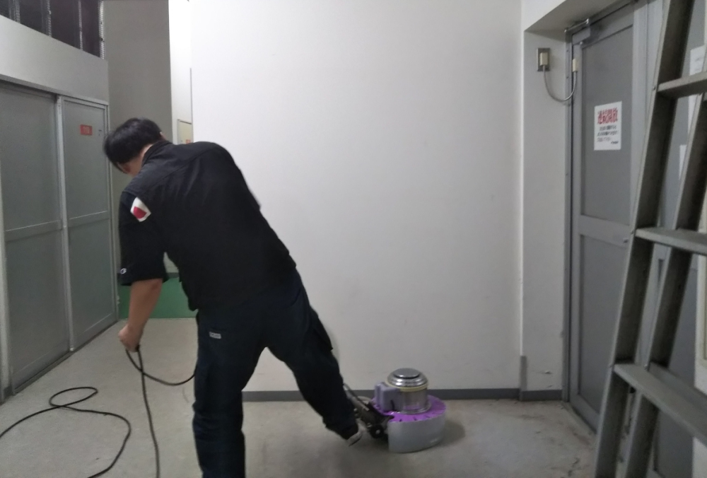 作業内容:塗り込んで汚れと古いワックスを浮かし、ポリッシャーでムラなく洗浄